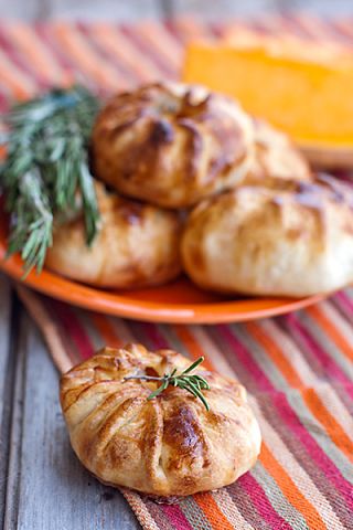 Классические вак-беляши с картошкой и мясом, но бывают и такие, с тыквой и курицей.