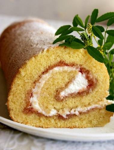 Готовый бисквит можно свернуть рулетом сразу или после остывания.
